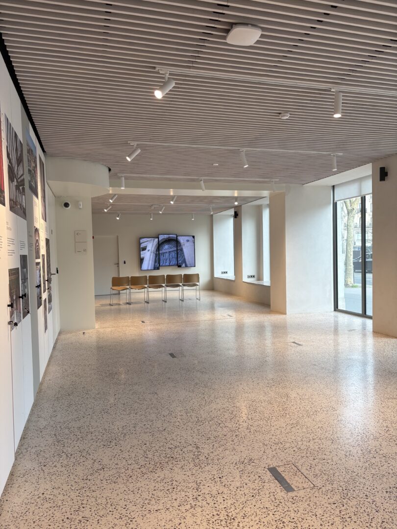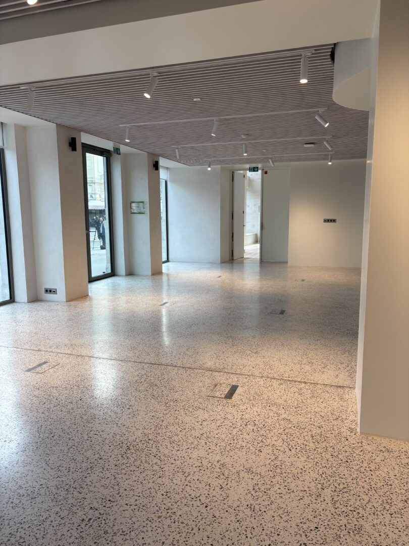 Baigné de lumière naturelle grâce à sa façade ouverte sur rue, cet espace se distingue par son architecture épurée et modulable, pensée pour sublimer chaque exposition.